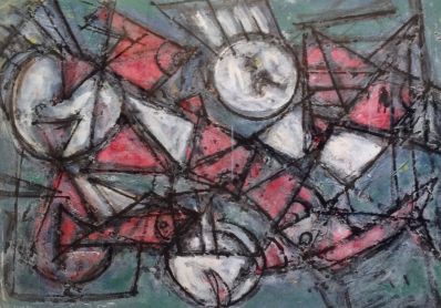 Gemengde techniek op papier, 45 x 30 cm, gesigneerd r.o. en gedateerd 1953