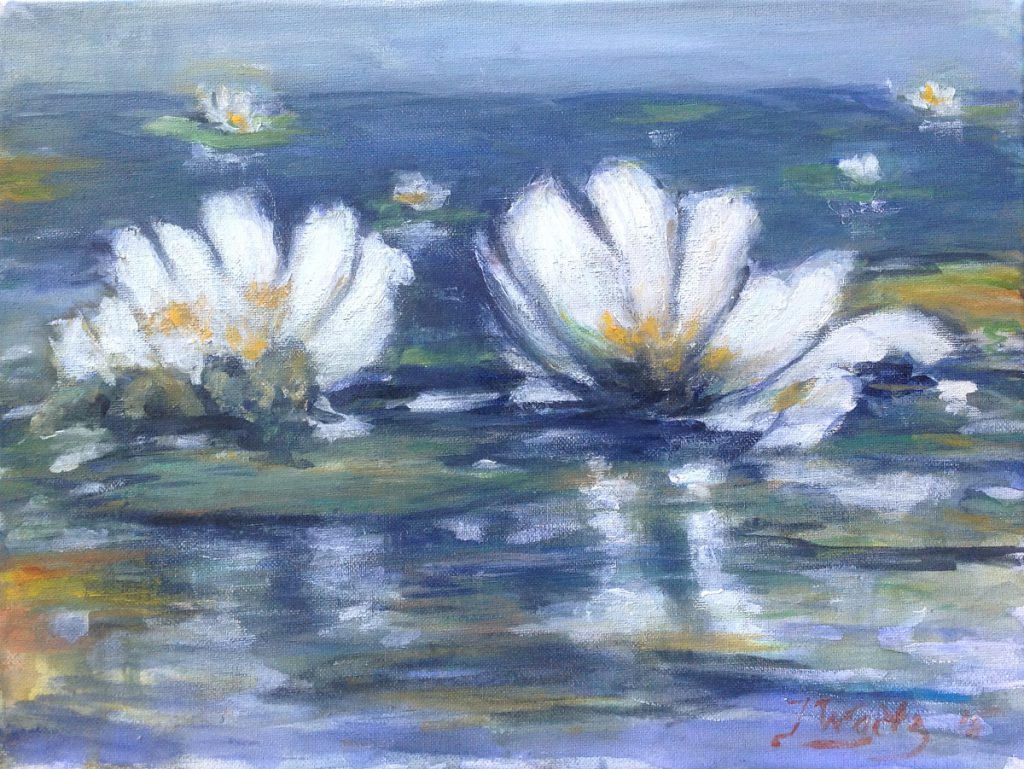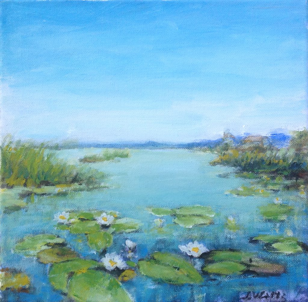 Plasgezicht met waterlelies