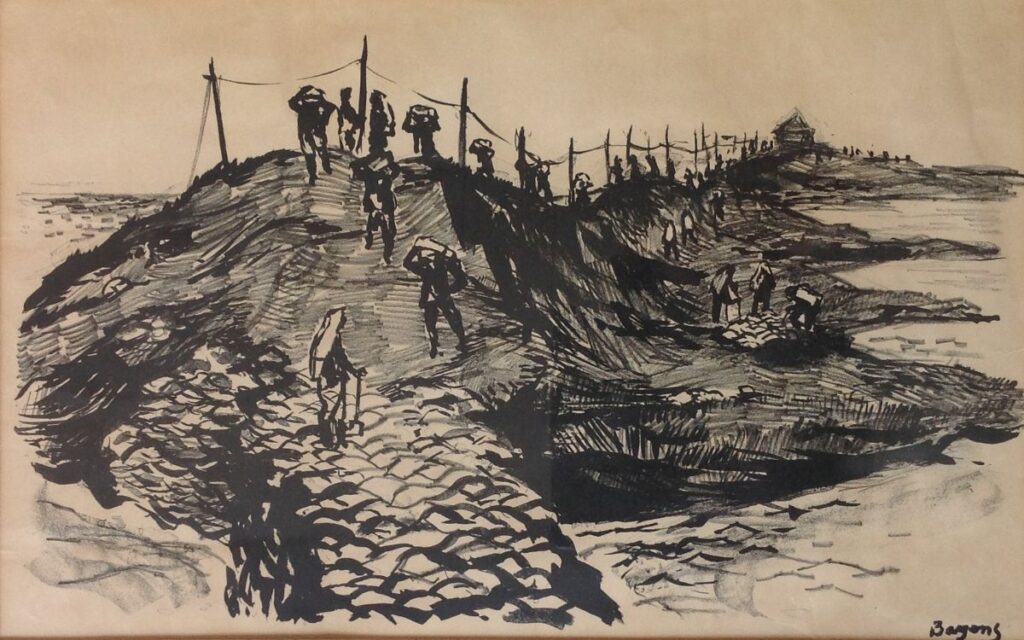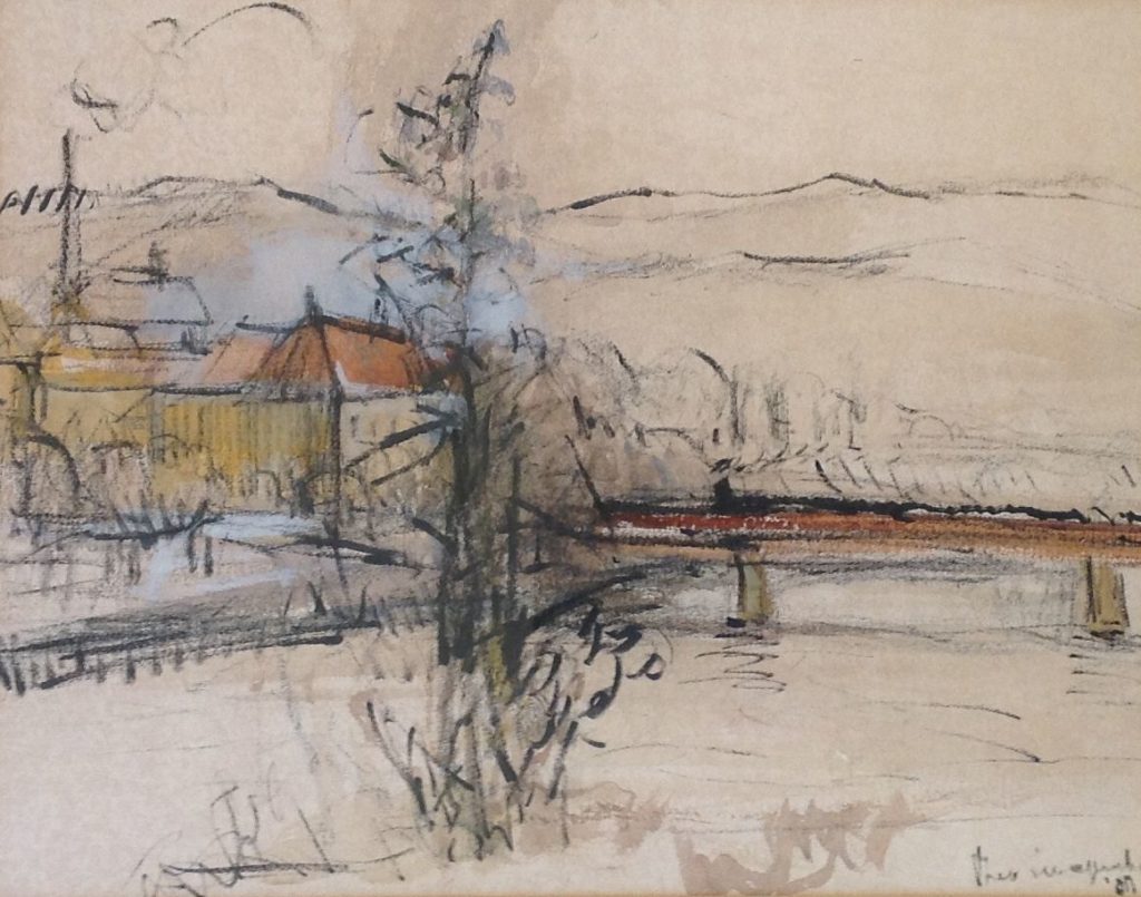 Gemengde techniek op papier, 45 x 30 cm, gesigneerd r.o. en gedateerd 1953